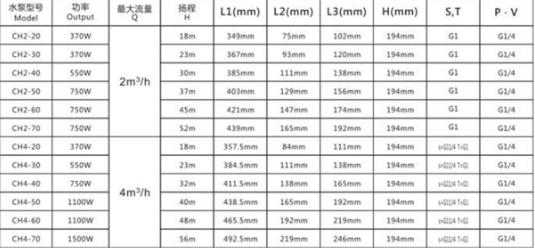 大元 DHDHLDHS系列臥式多級泵基本參數圖