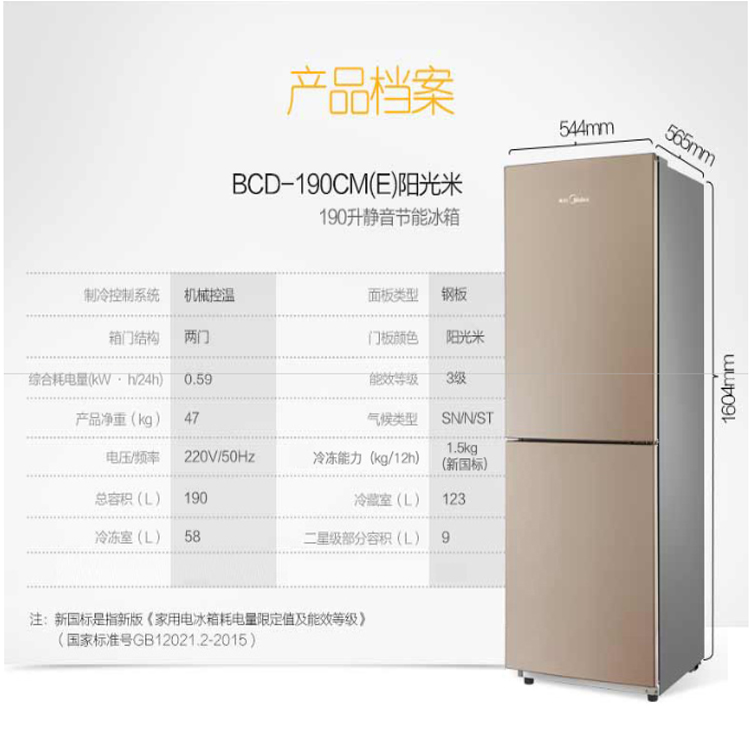 美的(Midea)190升 小型家用兩門小冰箱 HIPS環保內膽 節能靜音 持久鎖冷自動控溫