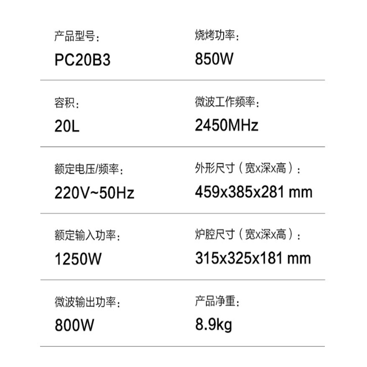 美的多功能微波爐微烤一體機參數