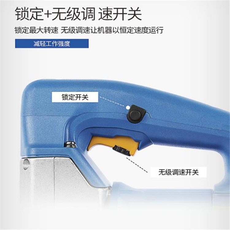 東成曲線鋸鎖定+無極調速開關,讓機器以恒定速度運行,減輕工作強度