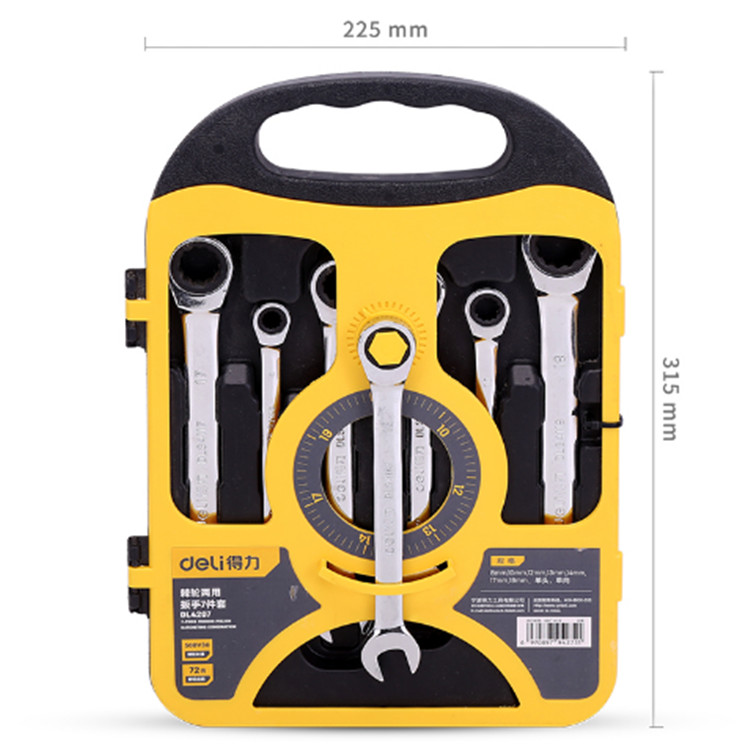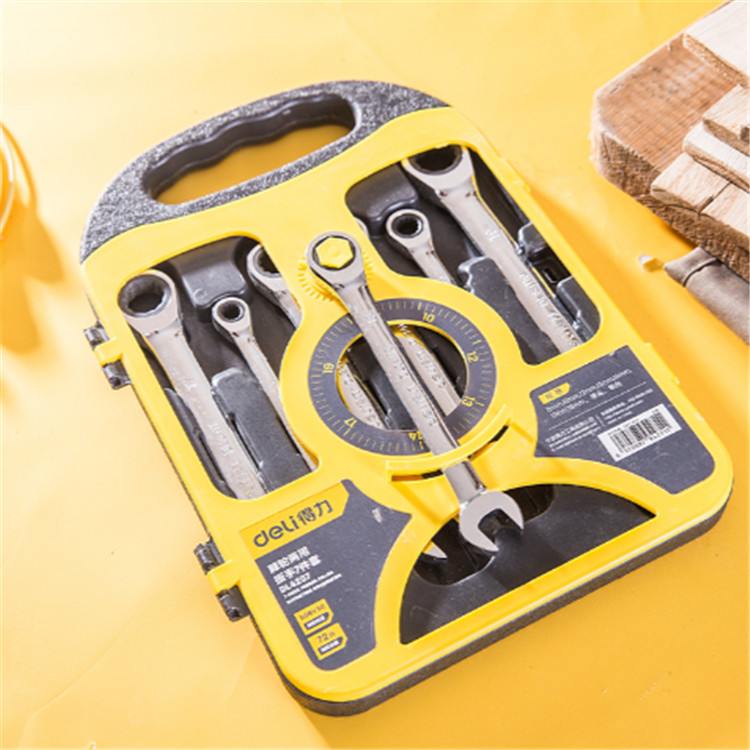 鏡面棘輪兩用快板7件套 兩用開口梅花扳手自動扳手五金工具板手