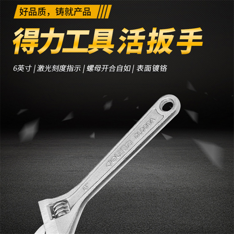 得力6寸活扳手表面鍍鉻美觀耐腐蝕。