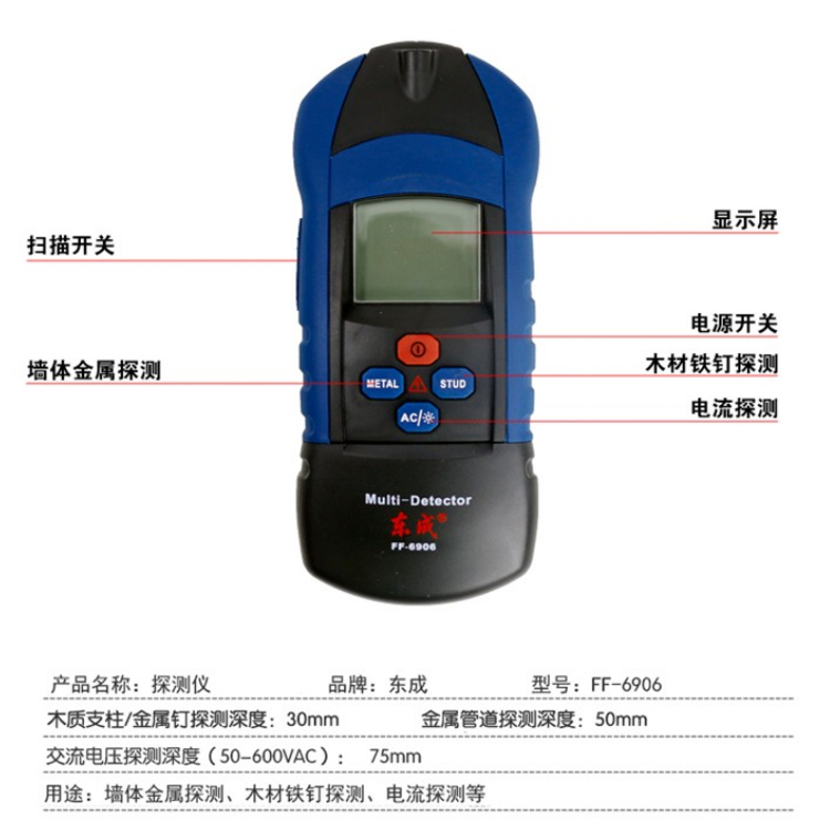 東成墻體金屬探測(cè)儀FF-6906 導(dǎo)體木材金屬多功能探測(cè)