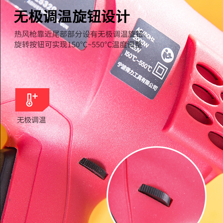 調(diào)溫?zé)犸L(fēng)槍二檔風(fēng)量切換|無極調(diào)溫|防燙設(shè)計(jì)|應(yīng)用廣泛