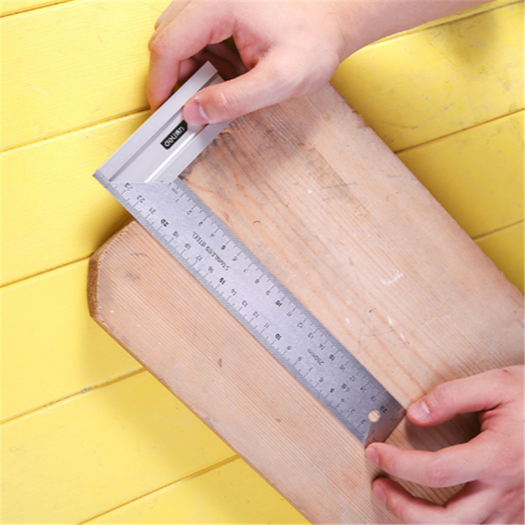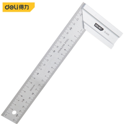 得力鋼角尺250mm尺身與底座連接緊固,測量精準。