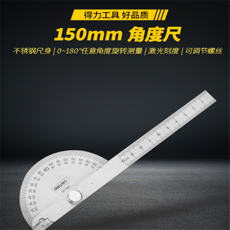 得力角度器150mm可調節螺絲設計,固定測量角度,方便讀數。