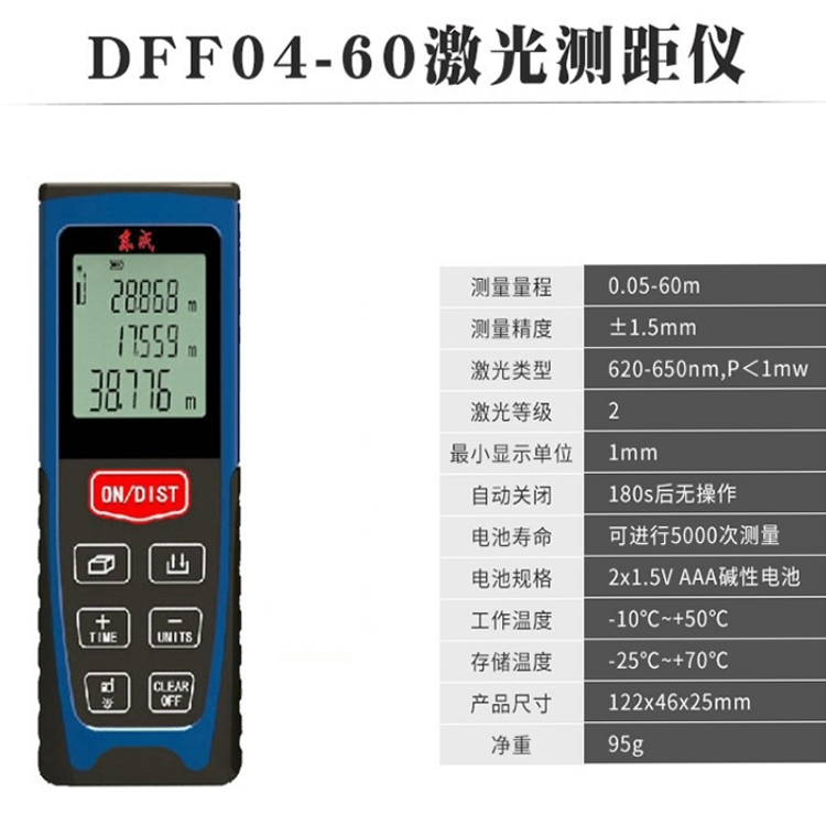 東成激光測距儀DFF04-60是一種測量長度或者距離的工具,