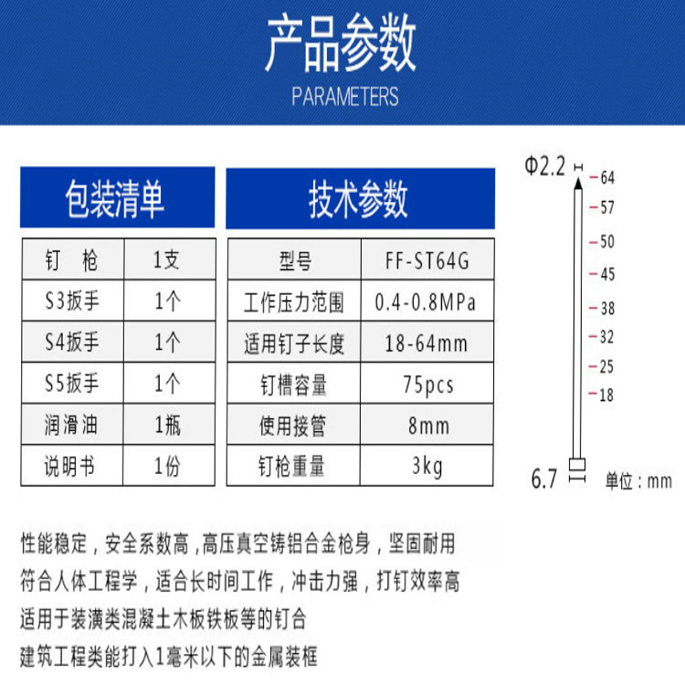 東成氣動鋼釘槍FF-ST64G耐磨接頭高精度車床造型 嚴絲合縫,