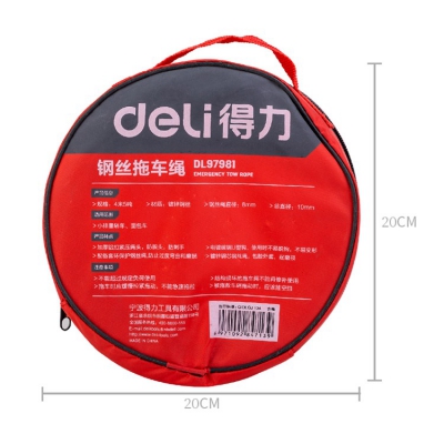得力鋼絲拖車繩4米5噸鋼絲汽車牽引繩應急救援拖車拉車繩