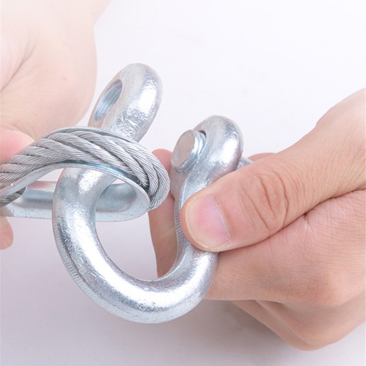 鋼絲拖車繩電鍍碳鋼U型鉤,使用時不易脫鉤,不易變形斷裂。