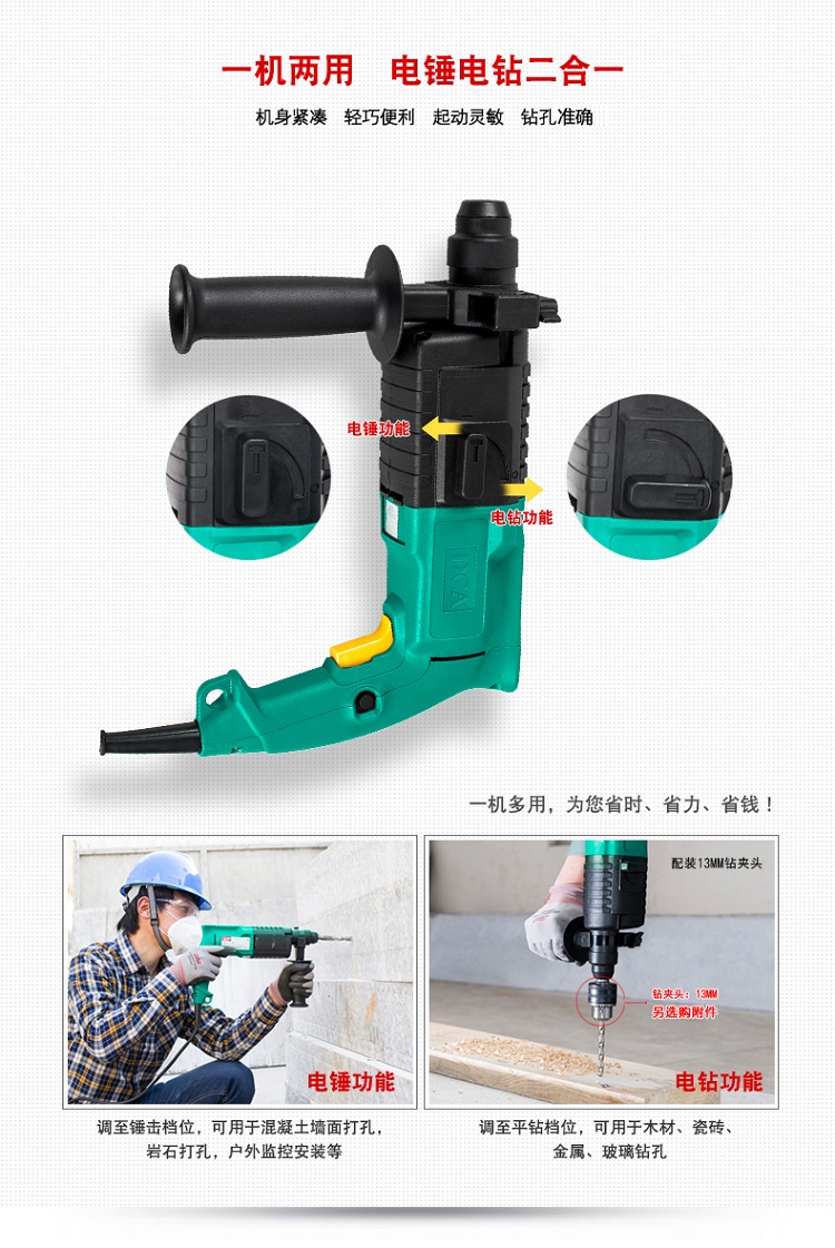 電鉆功能和電錘功能輕松轉換