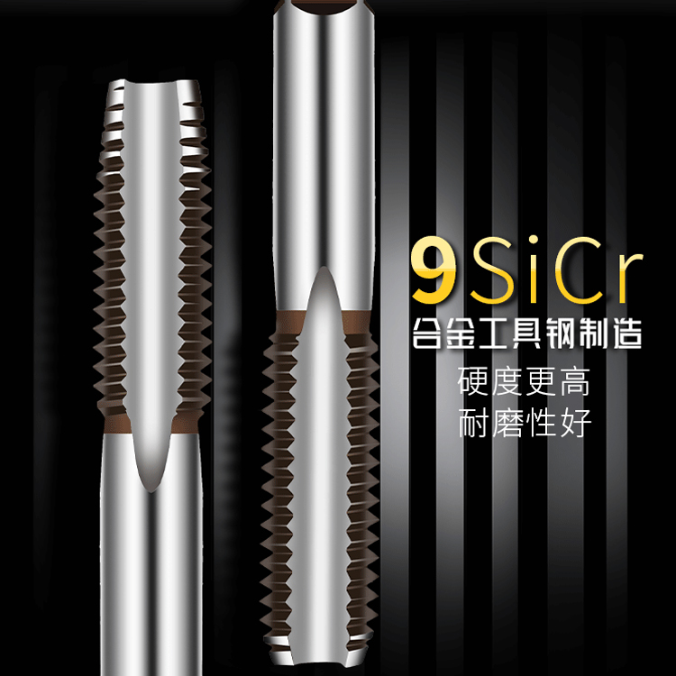 絲錐9SiCr合金工具鋼制造,硬度更高,耐磨性好