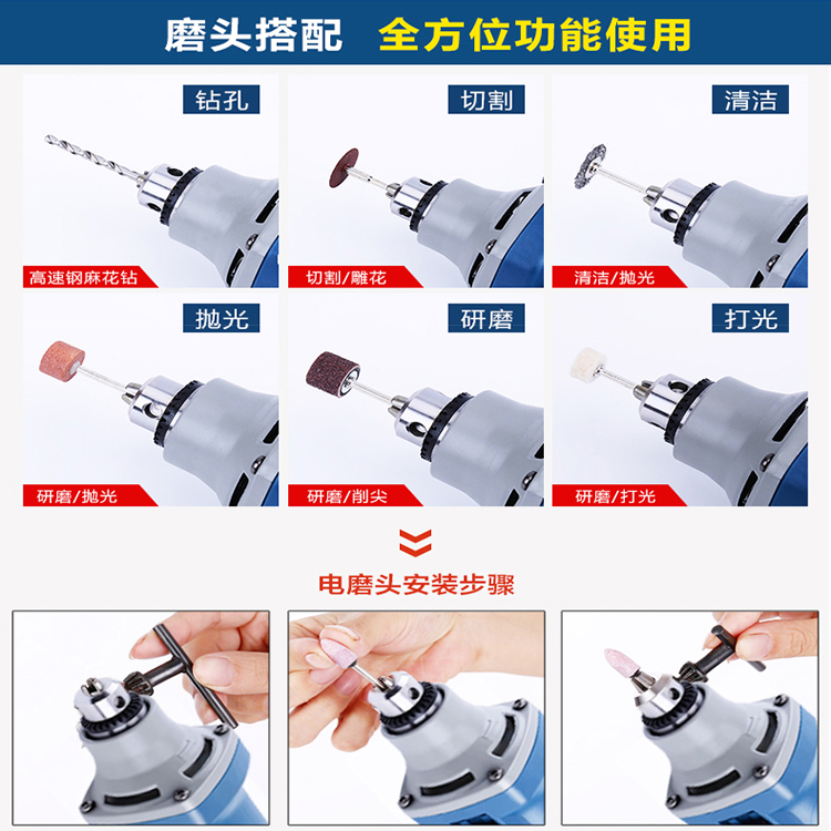 磨頭搭配及安裝步驟圖。
