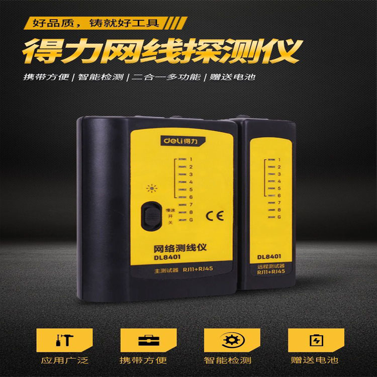 得力多功能網線測試儀電話線測線儀網絡信號通斷檢測器工具