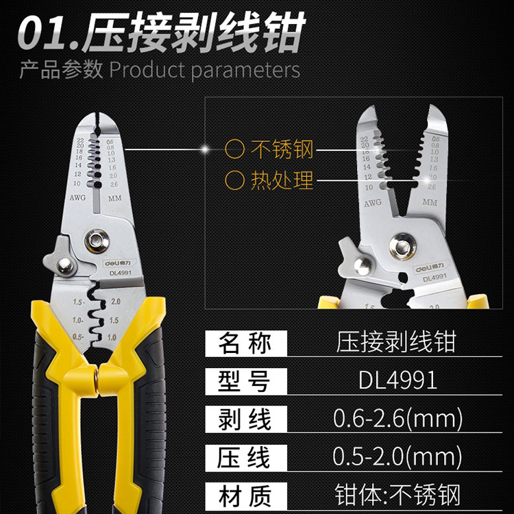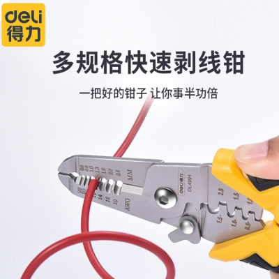 得力剝線鉗DL4991多功能電工鉗子壓線撥線剪線鉗剝皮器扒線鉗子