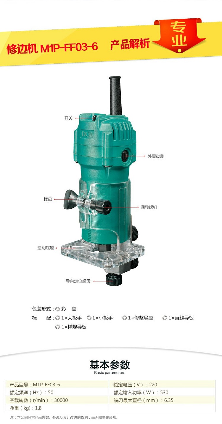 東成DCA修邊機M1P-FF03-6多功能木工開槽機diy雕刻機電動工具530W