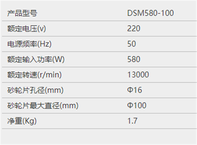 東成角向磨光機基本參數圖