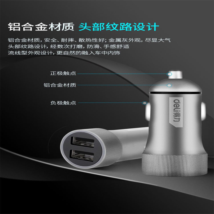 得力工具車載充電器汽車車充一拖二點煙器插頭usb車用多功能快充