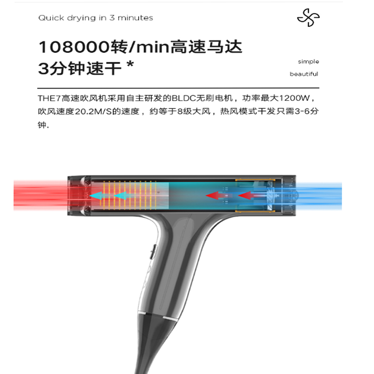 美的負(fù)離子恒溫電吹風(fēng)機(jī)采用日本進(jìn)口NTC智能溫控,精準(zhǔn)溫控,呵護(hù)發(fā)質(zhì)。