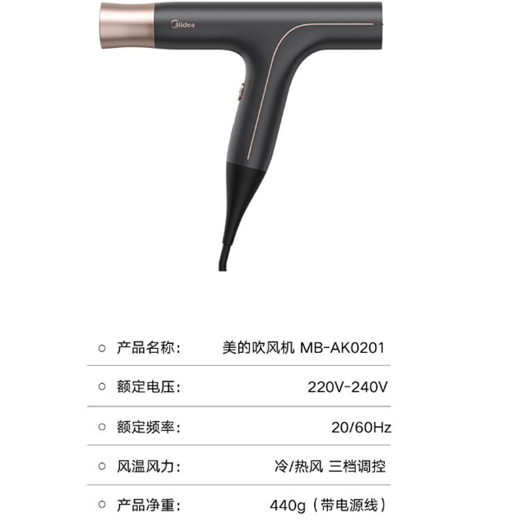 美的(Midea)吹風(fēng)機(jī)家用負(fù)離子護(hù)發(fā)大功率靜音恒溫電吹風(fēng)MB-AK0201