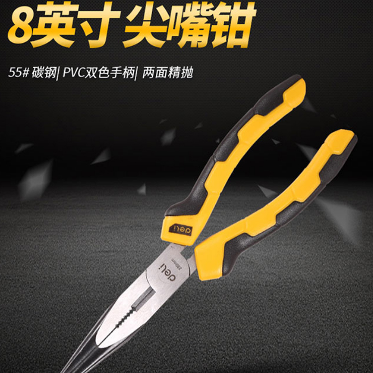 得力工具 8寸家用尖嘴鉗DL0102尖口鉗子電工,