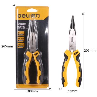 得力工具 8寸家用尖嘴鉗DL0102尖口鉗子電工