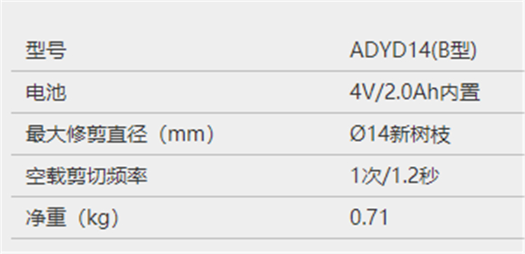東成充電式修枝剪基本參數圖