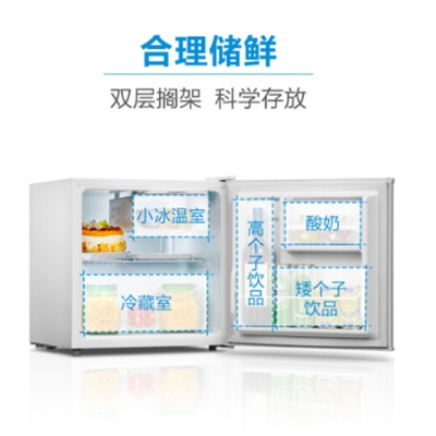 美的單門迷你小冰箱雙層冷藏架,合理冷藏空間。