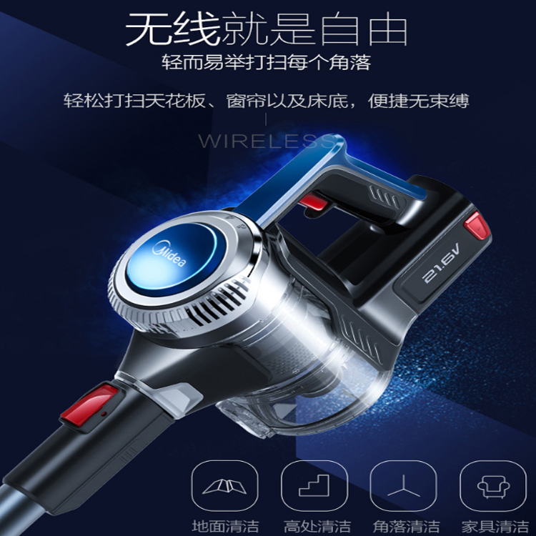 美的手持式家用無線吸塵器輕松打掃,便捷無束縛。
