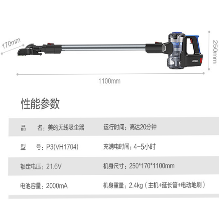 美的(Midea)吸塵器P3 (VH1704)手持式充電家用無線吸塵器
