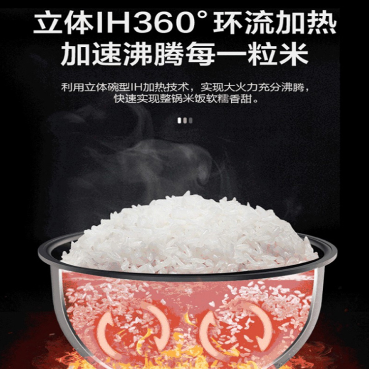 美的精鐵釜內膽家用電飯煲立體環流加熱,加速沸騰每一粒米。