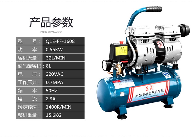 東成Q1E-FF02-1608無油靜音空壓機(jī)木工噴漆氣泵空壓機(jī)基本參數(shù)