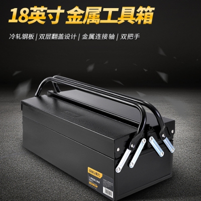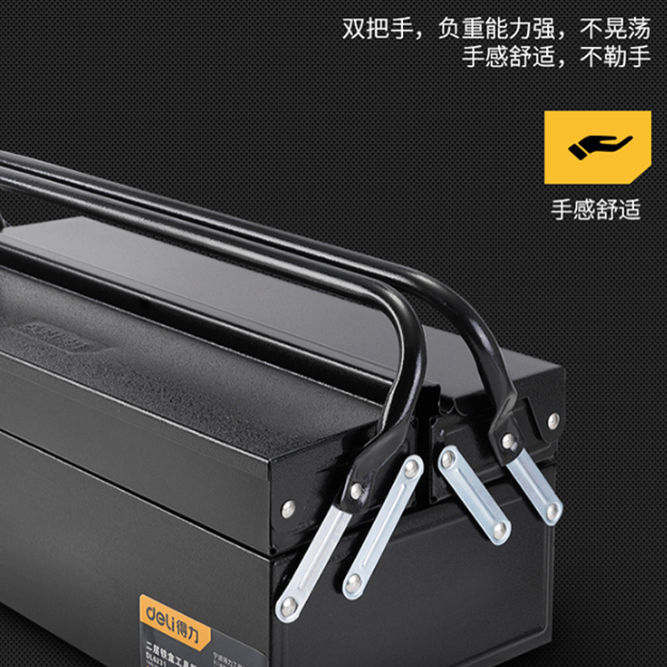 得力(deli) 加厚型金屬工具箱雙層翻蓋設計 雙把手家用多功能五金工具收納盒車載