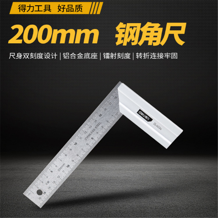 得力 鋼角尺雙刻度設計,清晰準確。