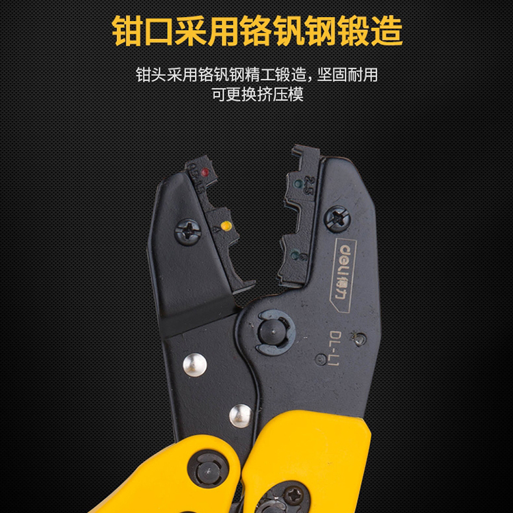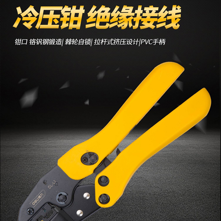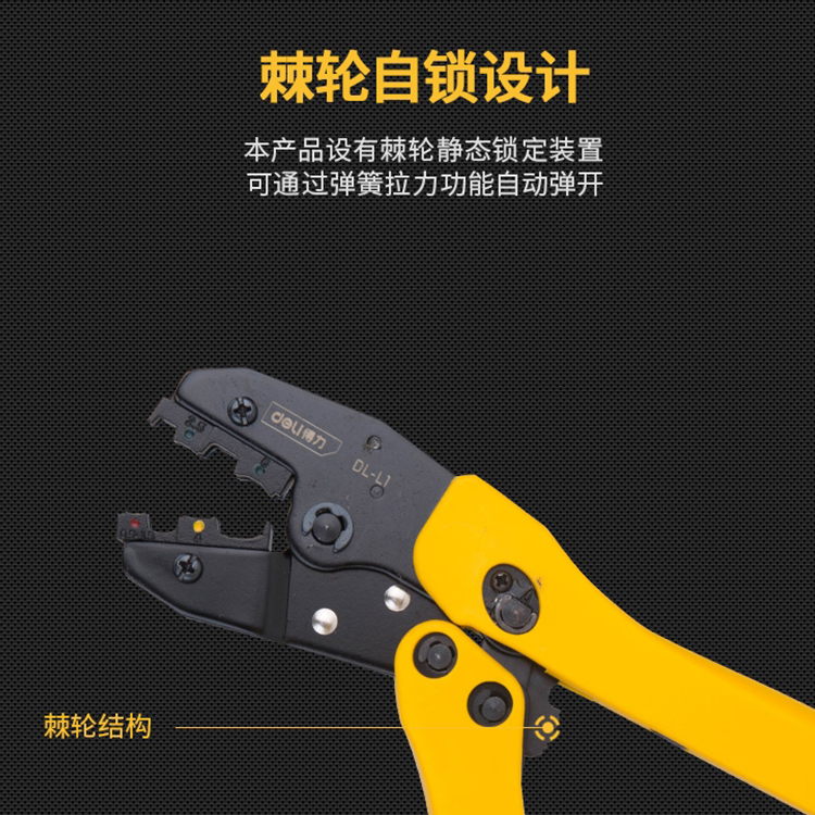 得力壓接鉗DL-L2電工快速冷壓鉗棘輪壓接鉗壓鉗電工夾線壓線鉗工具