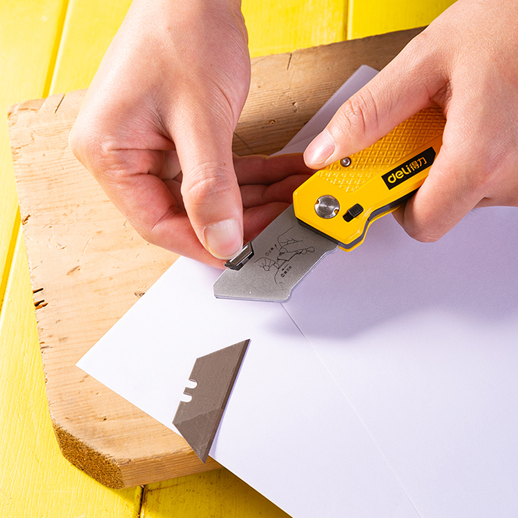 得力鋅合金折疊割刀DL006Z(6刀片)梯形刀片,更換便捷,硬度高,切割力強。