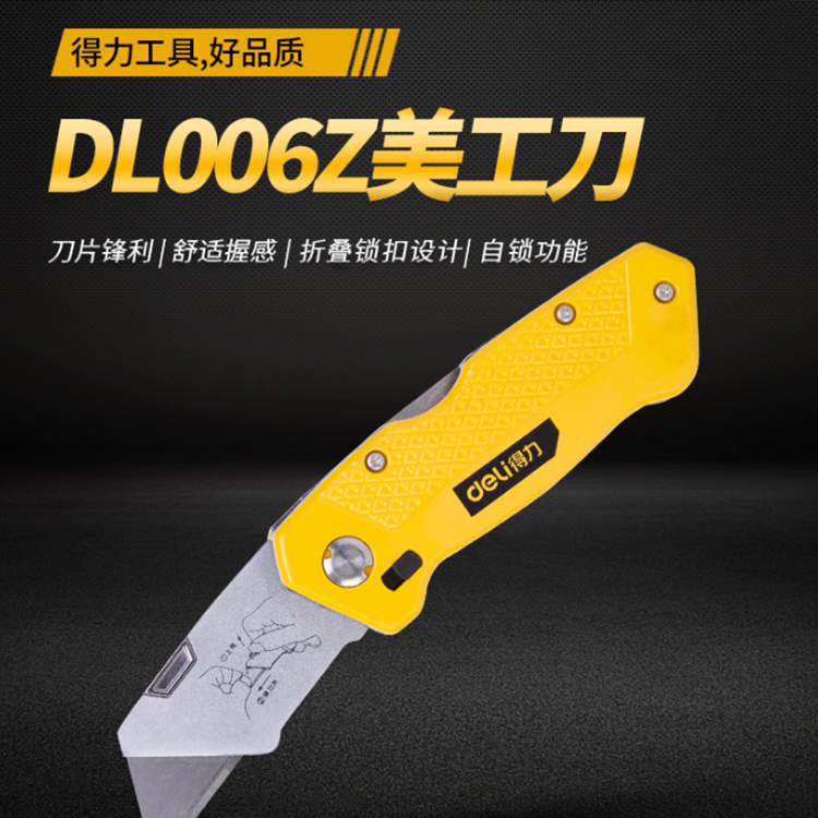 得力鋅合金折疊割刀DL006Z(6刀片)梯形刀片,
