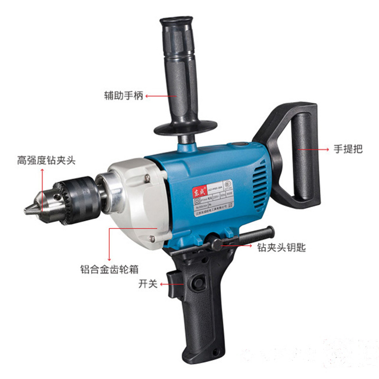 東成攪拌機飛機鉆360度自由旋轉D型手柄,優化攪拌輪結構,操作方便,作業效率