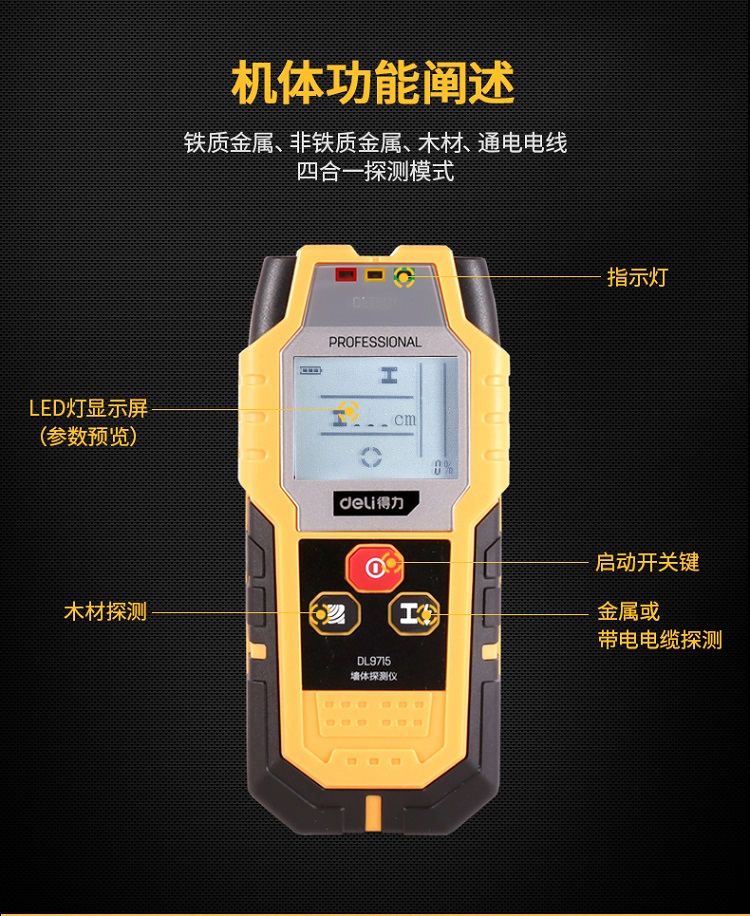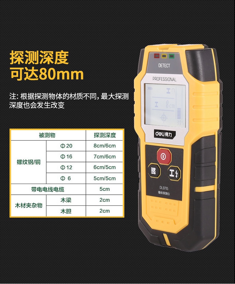 得力(deli) 多功能金屬探測器探測儀木材電纜墻壁電線墻體檢測儀
