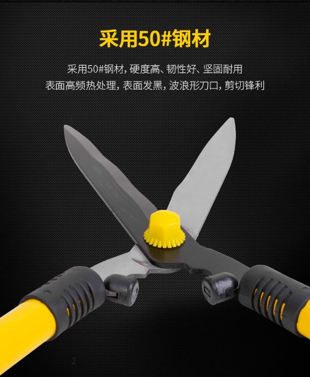 園林整籬剪產品刃口采用65Mn,整體熱處理,切削鋒利,緊固耐用。