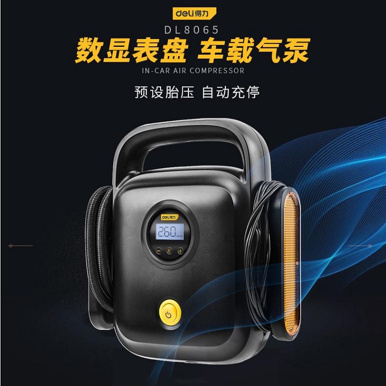 得力工具車載充氣泵汽車用小轎車輪胎打氣泵車用電動(dòng)便攜式打氣筒