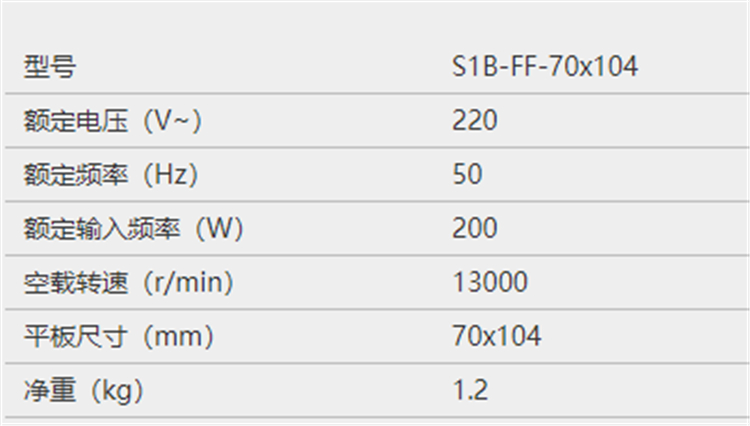 - 型號名稱S1B-FF-70x104