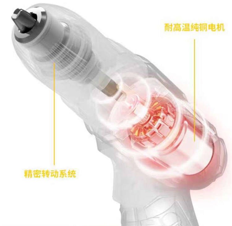 手電鉆內芯耐高溫純銅電機配合精密轉動系統為鋰電鉆提供澎湃的動力 可降低損耗 提高動力