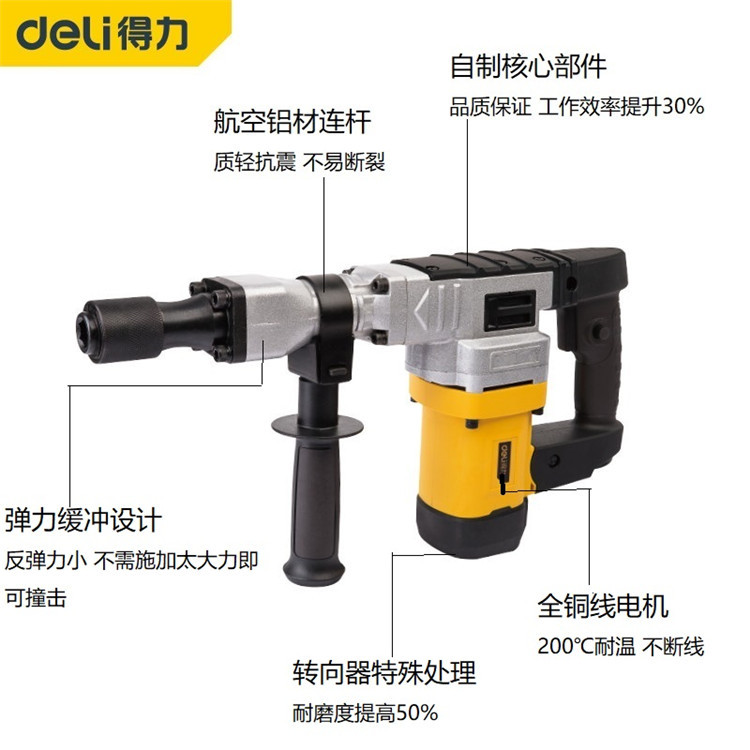 得力(deli)大功率重型電鎬打石混凝土工業電動單用風鎬炮沖擊鉆DL6327 DL6322 DL6321