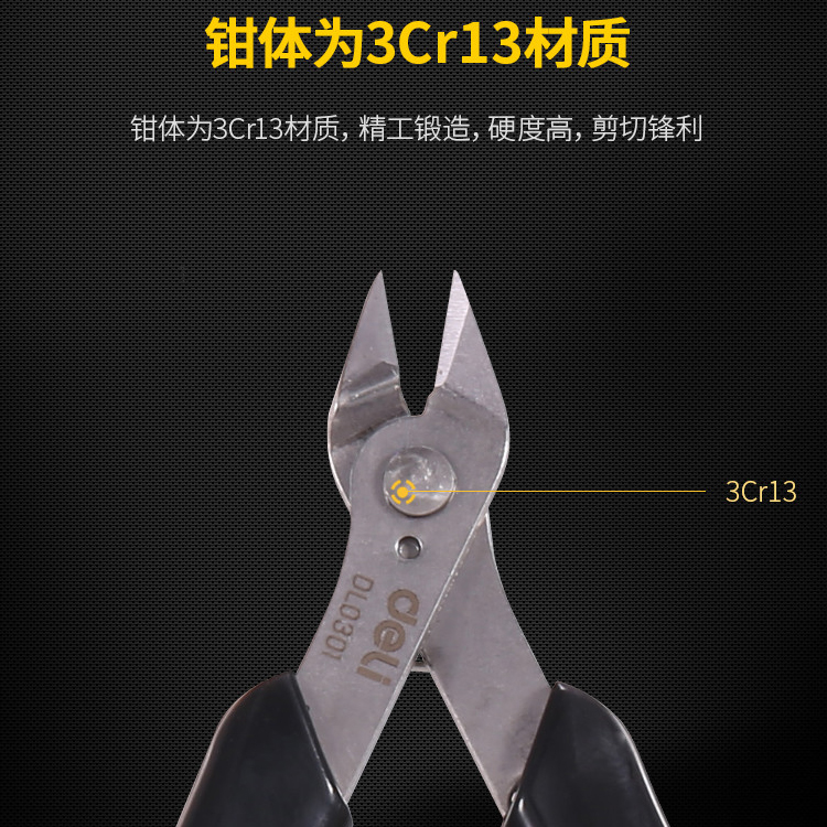 得力電子剪切鉗DL0301修邊剪毛邊剪切線鉗尖嘴剪水口鉗迷你省力