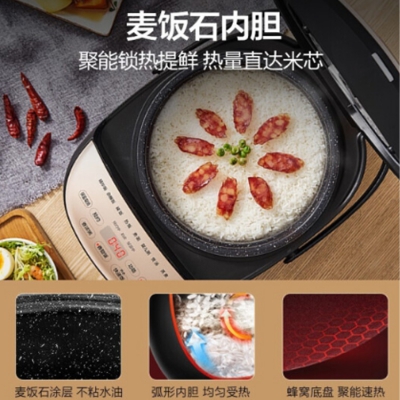 美的多功能電飯鍋麥飯石材質,有效聚能鎖熱提鮮。