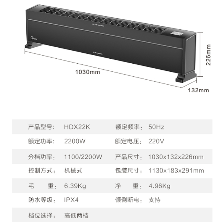 美的(Midea)移動地暖/取暖器/電暖器/電暖氣片家用 靜音節(jié)能 遙控防水踢腳線