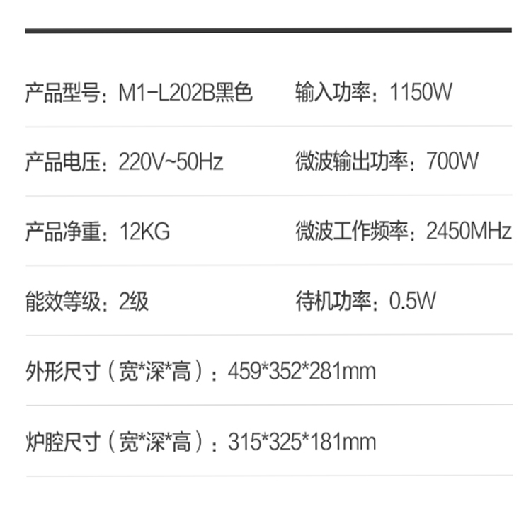 美的(Midea)M1-L202B 快捷家用微波爐 平板加熱 多能菜單一鍵啟動