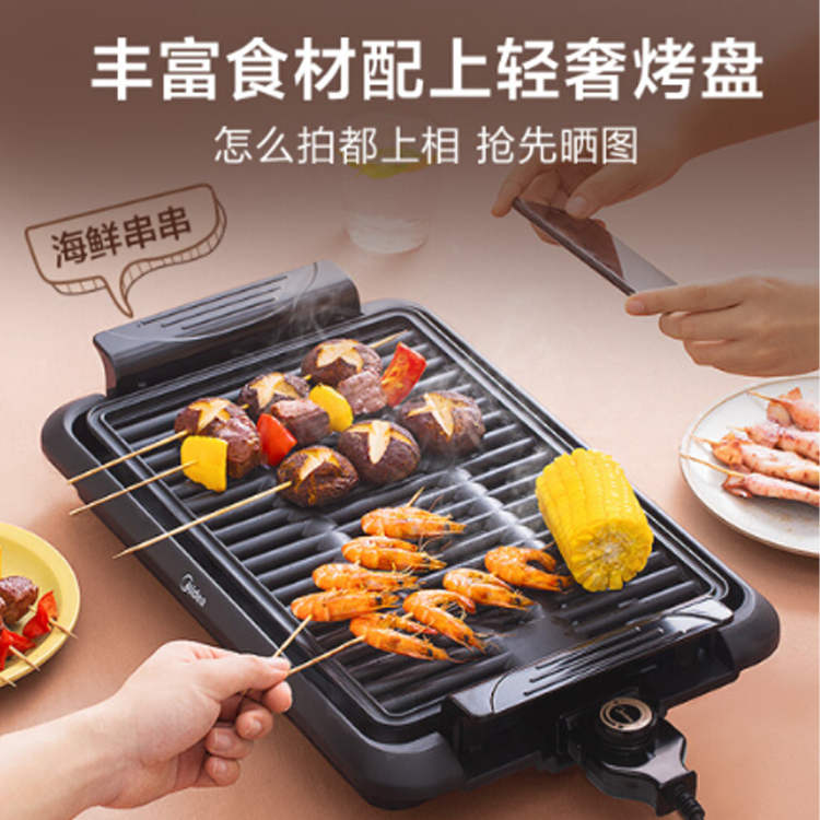 美的(Midea)電餅鐺電燒烤爐電烤盤大功率速熱家用無煙不沾烤串機MC-JK4025P101