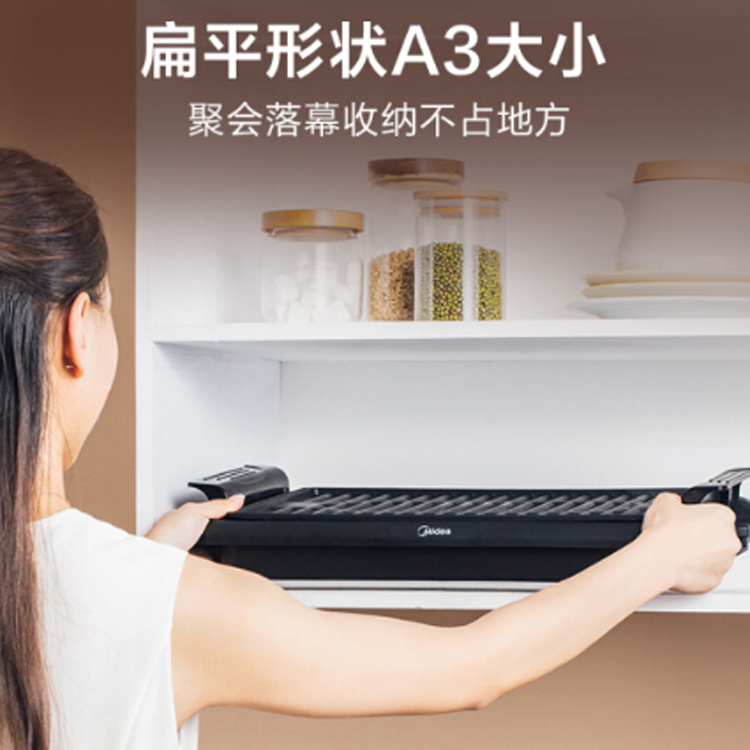 美的無煙不沾烤串機寬邊把手設計,拿取不費力。